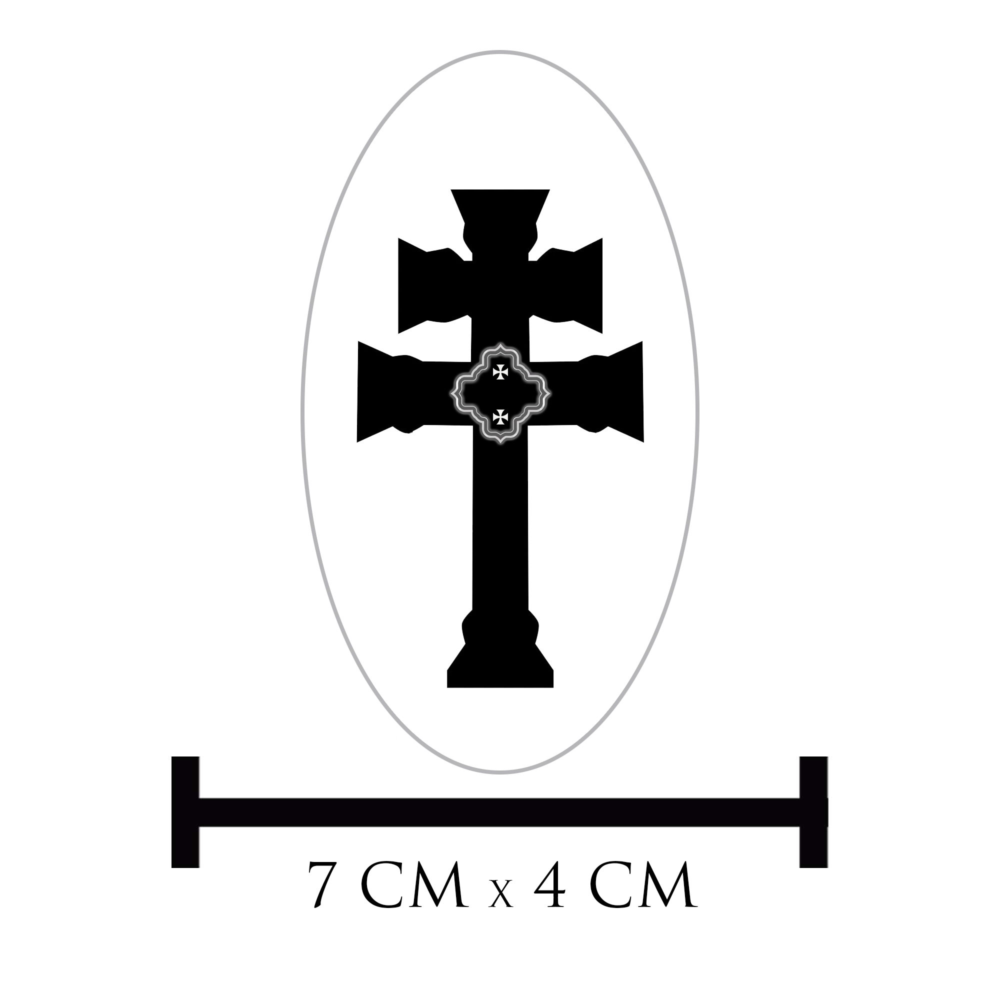 Adesivo Oval Cruz Caravaca fundo branco.