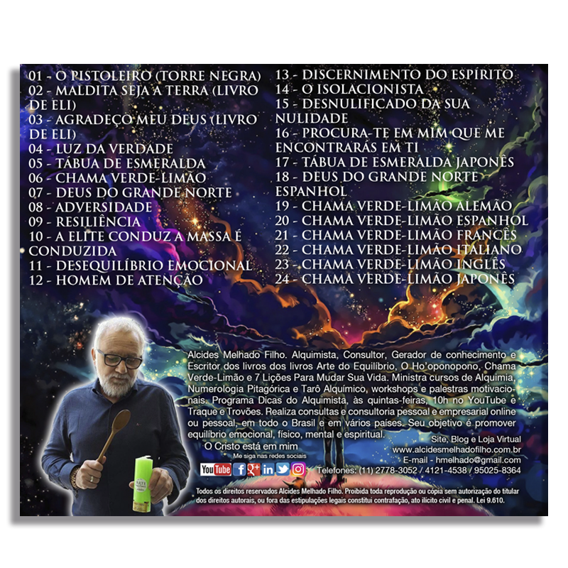 Aproveite também para conhecer os outros CDs de Meditação: Shamballa e Quéops, Jardim de Maria, Eliminação de Enfermidades, O Ser Solitário, Mãe Mulher, Biblioteca do Castelo de Shamballa, Vivemos uma Vida Independente, Somos Todos Iguais, No Ritmo da Alquimia (Volumes I, II e III).