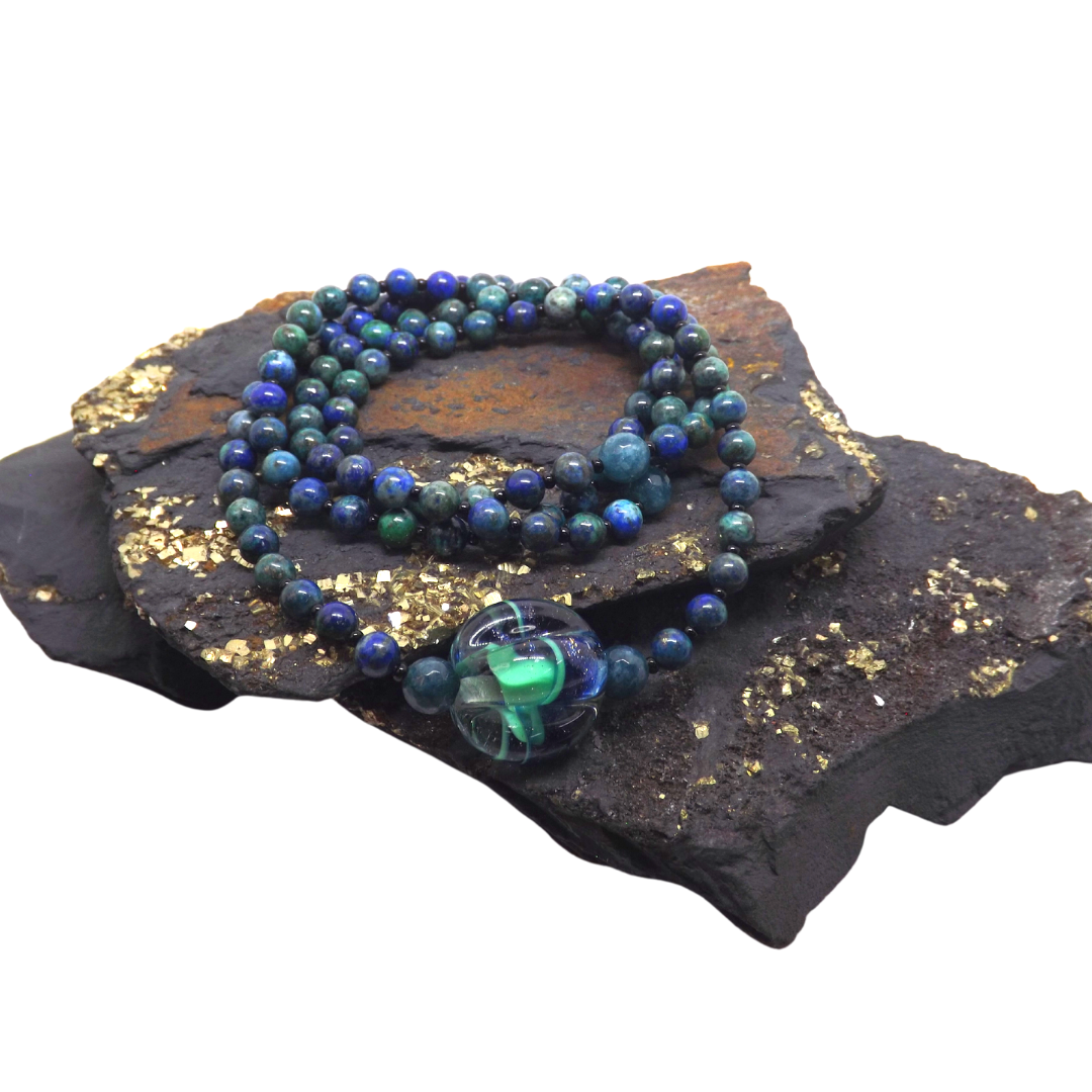 Japamala Azurita de 6mm, feito especialmente para você com um design exclusivo, constituído de 108 contas, sendo ideal para a prática do Ho’oponopono ou outros mantras, conforme indica o Alquimista Alcides Melhado Filho.